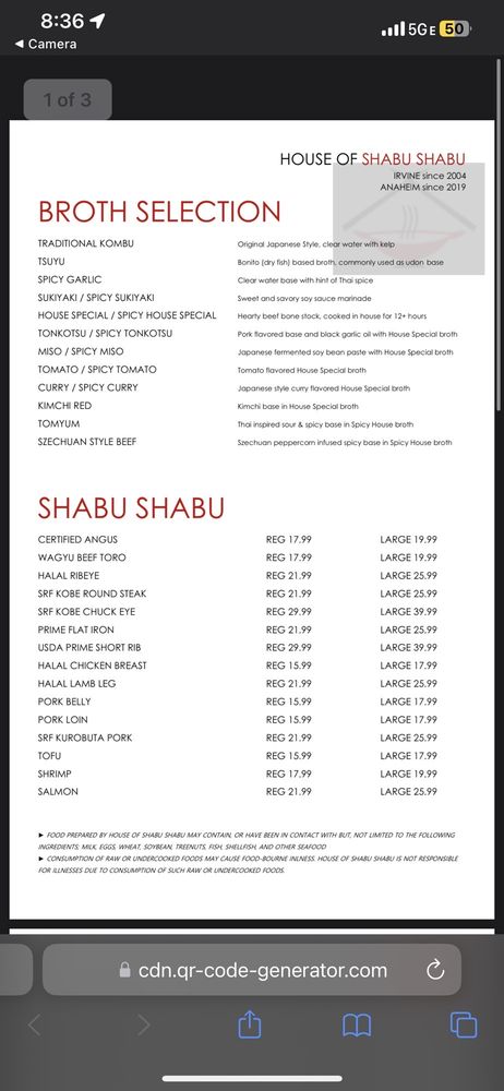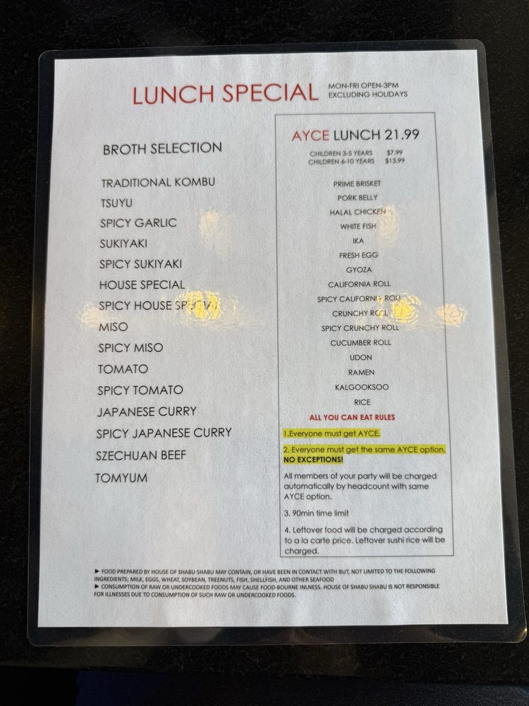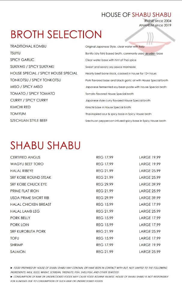 House of Shabu II Menu